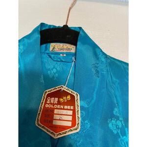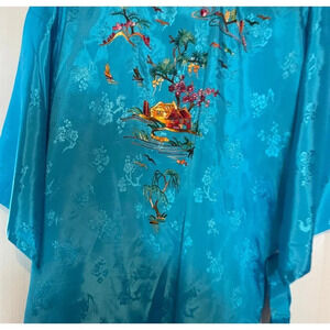 NWT Golden BEE Dragon All Rayon Hand Embroidered Long Red Kimono Robe Blue Sz S