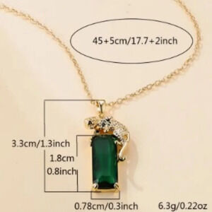 NWT Golden Plated Emerald Green Crystal Leopard Pendant Necklace with Gold Chain