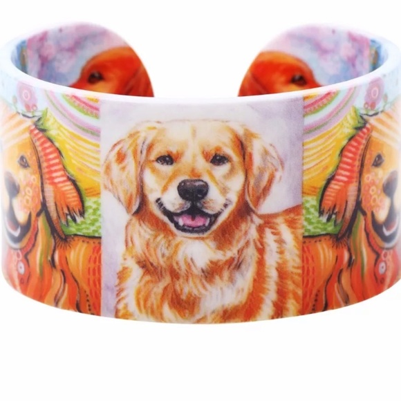 Colorful Golden Retriever Dog Adjustable Acrylic Cuff