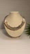 Stunning gold and silver necklace with intricate detailing. Perfect for any occasion.