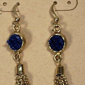 NWT Gold-tone Fringe chain Blue Drop Dangle Earrings