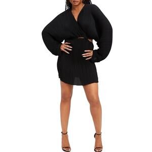 NWT Good American Always Fits Plissé Sculpted Black Mini Dress Size 00/0 XXS/XS