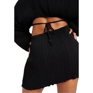 NWT Good American Always Fits Plissé Sculpted Black Mini Dress Size 1/2 Small/Medium Retail $150 Play with texture in our Always Fits Plissé Sculpted Dress. It showcases a glossy shine and luxurious feel of this soft, pleat fabric. It has a customizable neckline and waistline so you can adjust how you please. Add some heels and you will be ready for the perfect night. • Customizable neckline and waistline • Volume sleeves • Ultimate comfort pleated fabric • Super stretch material that moves and grows with you • Elastic waistband with adjustable ties • 100% polyester STYLE: GDW0138 COLOR: BLACK001