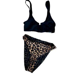 NWT Good American Bikini Top and Bottom Black/Animal Print - 1 (Small)