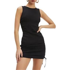NWT Good American Black Ruched Tank Mini Dress Size 2 Medium Retail $129
