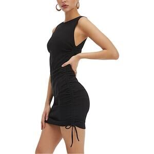NWT Good American Black Ruched Tank Mini Dress Size 2 Medium Retail $129