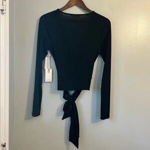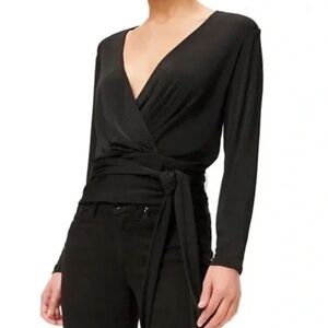 NWT! Good American Black Shimmer Long Sleeve Wrap Top - Size Large