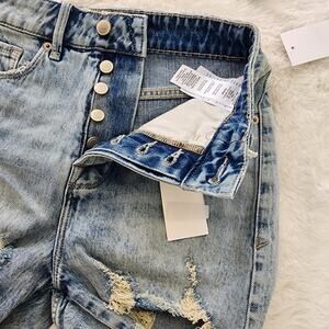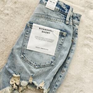 NWT Good American Bombshell Distressed High Waisted Denim Shorts. Women's Size 00 / 24.