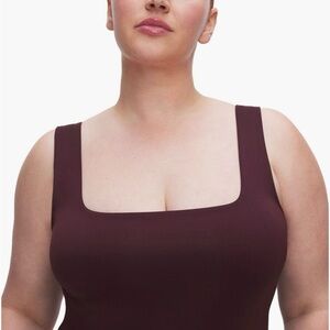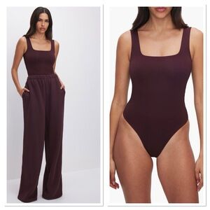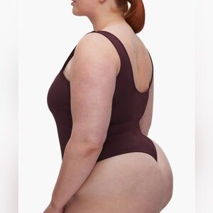 Sleek burgundy bodysuit. Square neckline. Perfect for layering.