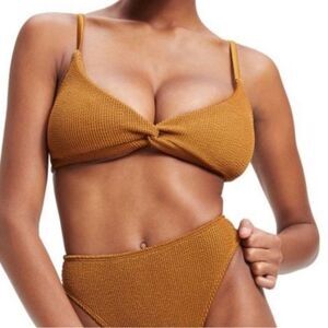NWT Good American Crinkle Always Fits Twist Top & Tiny Ties Bottom Bronze Brown