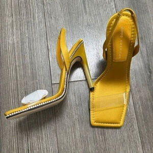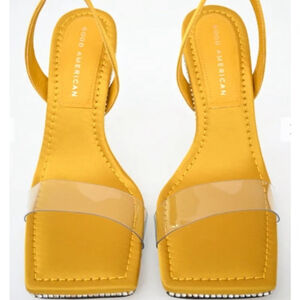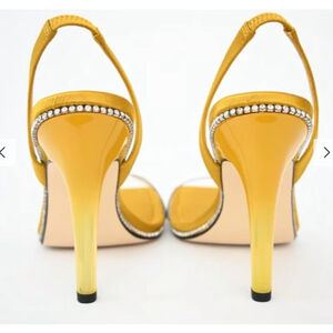 NWT Good American Crystal Crush Satin Lucite Sling Back Sandal Heels