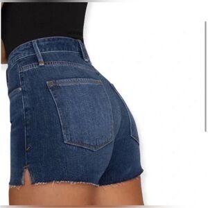 NWT Good American Cut Off Denim Jean Shorts 24 NEW High Rise Raw Hem