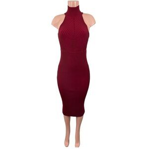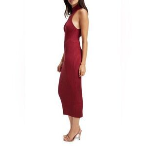 NWT Good American Dress Size 3/4 L/XL Angled Rib Mock Halter Midi Team Cardinal