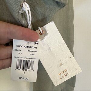 NWT Good American Essentials Green Collarless Half Zip Sweatshirt - Size 2 (M)