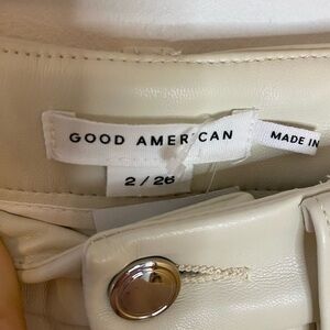 NWT Good American Faux Leather Boot Cut Crop Pants. Good American size 2/26 waist. Neutral, edgy, preppy, quiet luxury. (E2)