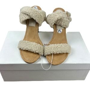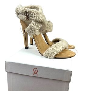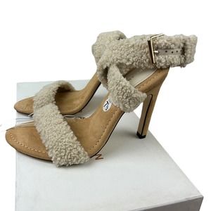 NWT Good American Faux Shearling Ankle Strap Sandals