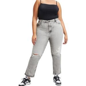 NWT Good American Good Boy Grey Wash High Rise Straight Jean Size 18 Retail $149