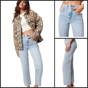 Good American Good Heritage vintage style jeans in rigid denim light pebbled wash. Your perfect run-around jeans. Cropped at the ankle. Fitted through the hips and relaxed through the the leg. New with tags, no flaws.