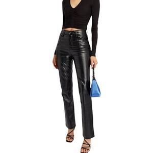 NWT Good American Good Icon Faux Leather Straight Jeans Size 8/29 Retail $175