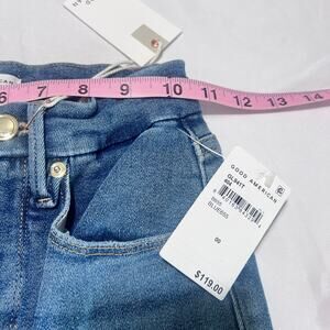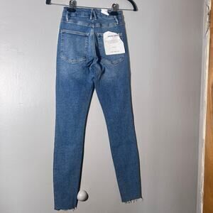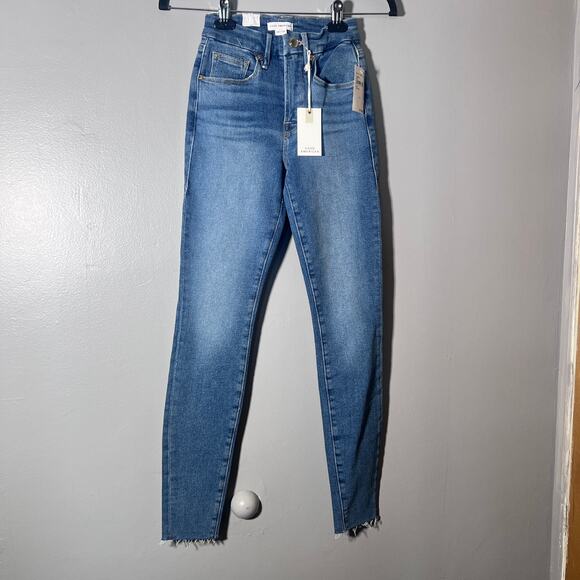NWT Good American Good Legs Skinny Jeans 00 / 24 Blue Ankle Raw Hem Stretch