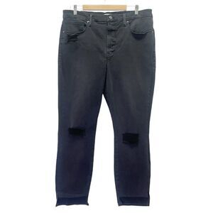 NWT Good American Good Legs Crop Step Hem Distressed Jeans Black141 Size 10 | Fits 16