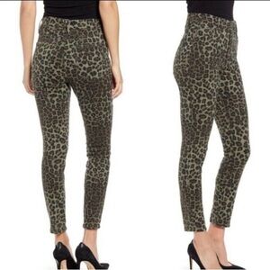 NWT Good American Good Waist Crop Jeans Green Olive Leopard Animal Sz 14 32
