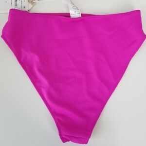 New with tags Good American Good Waist High Leg Bikini Bottoms in a size 2. Color is Fuchsia Pink.