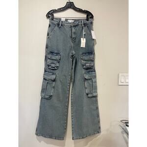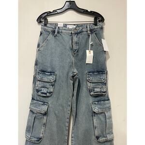 NWT Good American High Rise Wide Leg Denim Cargo Pants Indigo Women's Size US 2