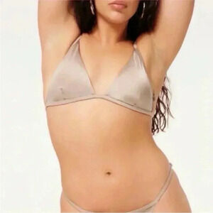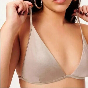 NWT Good American Mink Shine Perfect Fit Triangle Bikini Top Strappy Sz 2 Medium