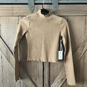 NWT: Good American Mock Neck Long Sleeve Ribbed Sepia Crop Top Size 1 (Small)
