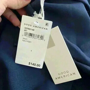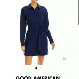 NWT Good American- Navy Blue Button Down Long Sleeve Collar Shirt Dress