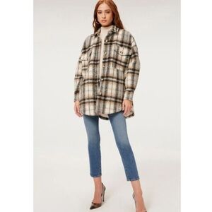 NWT Good American Plaid Shirt Jacket Shacket Neutral