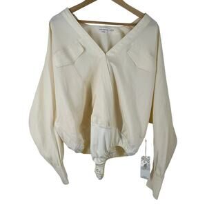 NWT Good American Plus Solid Bodysuit Off White Long Sleeve Women Size 4 XL