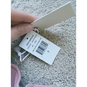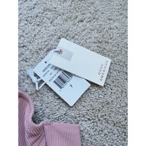 New with tags! This Good American Rib Show Off Bra Bikini Top in Desert Rose pink blends style, support, and stretch in one flattering piece. Designed in ribbed, textured fabric, it features a scoop neckline, wide straps, and an under-bust band for a confident, curve-hugging fit. Size 7 from Good American’s inclusive sizing range.