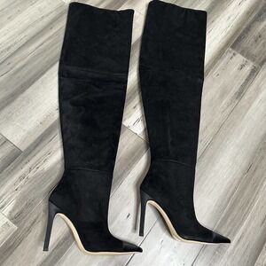 NWT Good American Suede Over the Knee Slouch Boot Women's Black Size 5.5