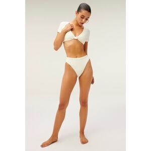 NWT Good American Swim Rib Twist Front T Shirt Top Cream Size 5 (XXL)