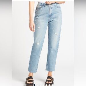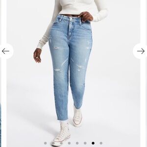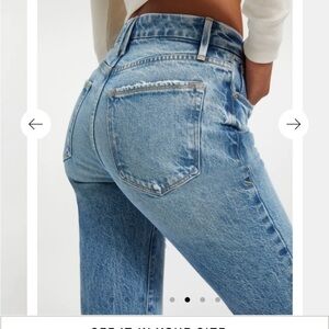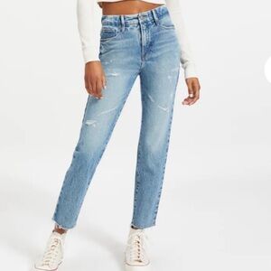 NWT Good American The Weekender High Waisted Distressed Raw Hem Indigo Jeans