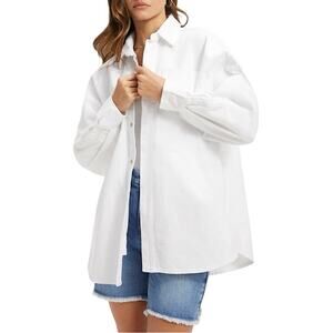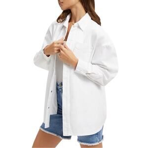 NWT Good American White Denim Snap Closure Oversized Shacket Sz 1/2 Small/Medium