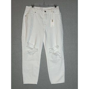NWT Good American White Jeans Size 8 /29 Distressed Mid Rise Pants