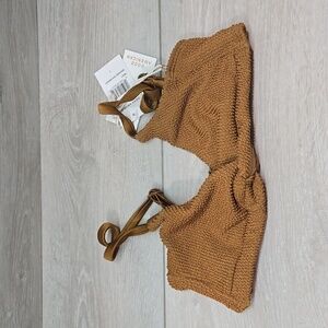 NWT Good American Women Bikini Top Bra Bronze Brown swim sz 1/S Bronse Fit Twist