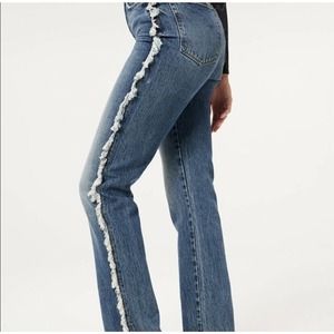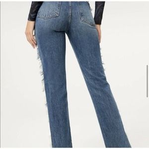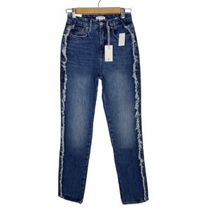 NWT Good American Womens Good Boy Jeans Size 0/25 Side Fray Blue818 High Rise