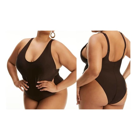 Good American Women's Plus Size Layout High Cut Deep Back One-Piece Swimsuit Size 7/4XL