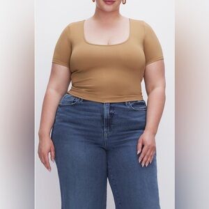 NWT Good American Women's Scoop Neck Crop Scuba Knit T-Shirt