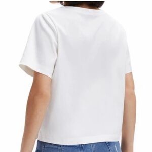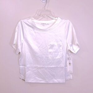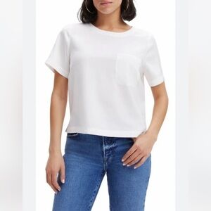 NWT Good American Woven Satin Pocket T-Shirt Ivory Size 0/XS