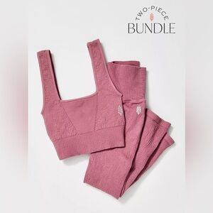 Both of our favorites in one place, this set includes our best-ever Good Karma leggings and square-neck bra in a so bold and fun tile textured knit.