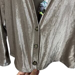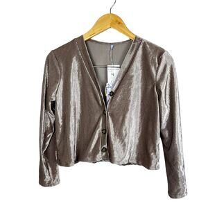 NWT Good Luck Girl Ribbed Velvet Button Up Crop Long Sleeve Shirt Sz Junior's Lg