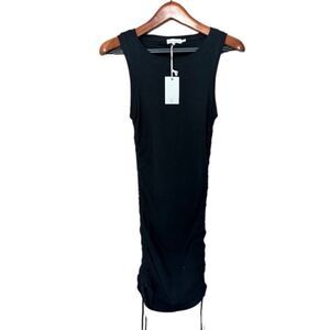 Side ruching adds subtle texture to a curve-skimming Bodycon dress made from organic and recycled fibers.
