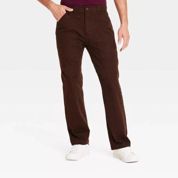 Goodfellow & Co men's utility pants, 33x32 men's pants, straight leg work pants, brown herringbone pants, relaxed fit utility trousers, heavyweight cotton pants men, durable men's work pants, men's casual utility pants, fly zipper button pants, Goodfellow men's straight leg