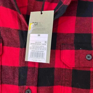 This vibrant red buffalo flannel, brand new with tags (NWT), is tailored for men in a versatile size medium. The classic buffalo check pattern adds a timeless touch, while the medium size ensures a comfortable and stylish fit for various occasions. The high-quality fabric promises both warmth and durability, making it an excellent choice for your wardrobe.