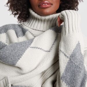 NWT Goop G. Label Luna Argyle Turtleneck Cape Sweater Gray Cream Merino Wool Top